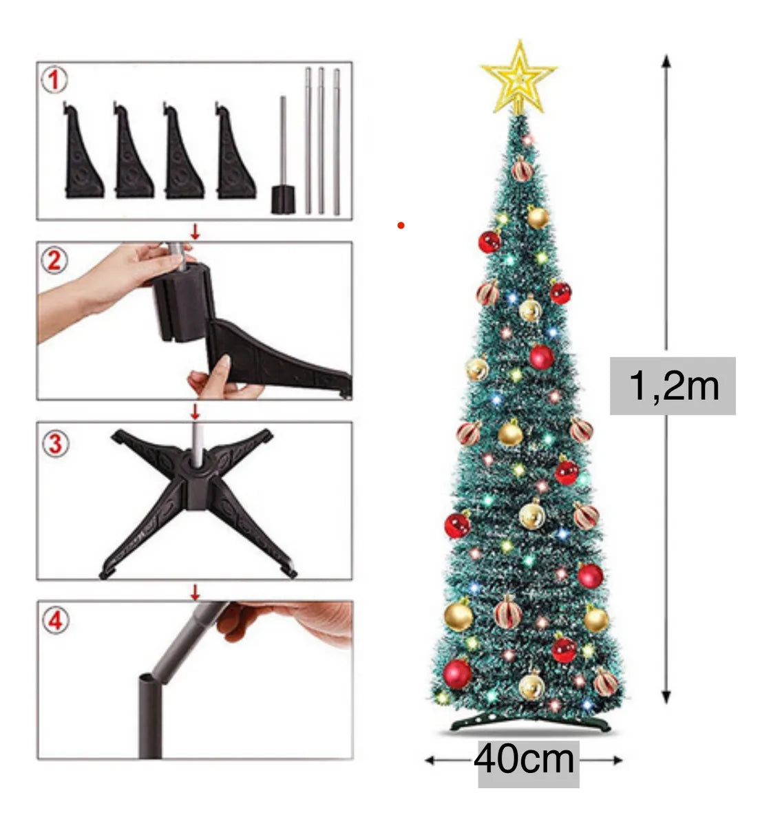 Este hermoso árbol plegable de 1,20 metros es perfecto para decorar cualquier espacio de tu hogar. Su color verde intenso y diseño frondoso lo convierten en una pieza esencial para crear un ambiente navideño lleno de magia. ¡Ideal para living, comedor, oficina, locales y más! 🎅✨